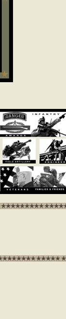 We intend on adding many more, and are always open to your suggestions. In addition, we have unique designs for veterans of many units from the above, as well as unique combinations of military awards, badges, and military decorations. Some awards currently available are: Airborne (Jump) wings, HALO, Rigger wings, and Air Assault wings, all with basic, senior and master levels and combat stars when available for the award. Tabs, such as the Ranger Tab, Special Forces Tab, and other tabs, are also available. Unique tabs are offered, including the Sniper tab, Recon, Scout, and other tabs. The Combat Infantryman’s Badge (CIB) and the Combat Action Badge (CAB). The Expert Infantryman’s Badge is also offered, as well as Explosive Ordnance Disposal (EOD) badges, and the Combat Medical Badge (CMB) and Expert Field Medical Badge (EFMB). Families and Friends of military personnel are not forgotten, and we have included many designs they can wear in support of their military person, such as “Proud Parent of a Soldier”, “Welcome Home”, “My Brother is a Green Beret” and other designs. We can certainly design something meeting particular needs. Please enter our site to view our current offerings. Our site is always adding more designs, but if you don’t see something you need, contact us, and we’ll try to add it as soon as possible. Copyright © by the owners of Military Tops.com; All rights reserved. |